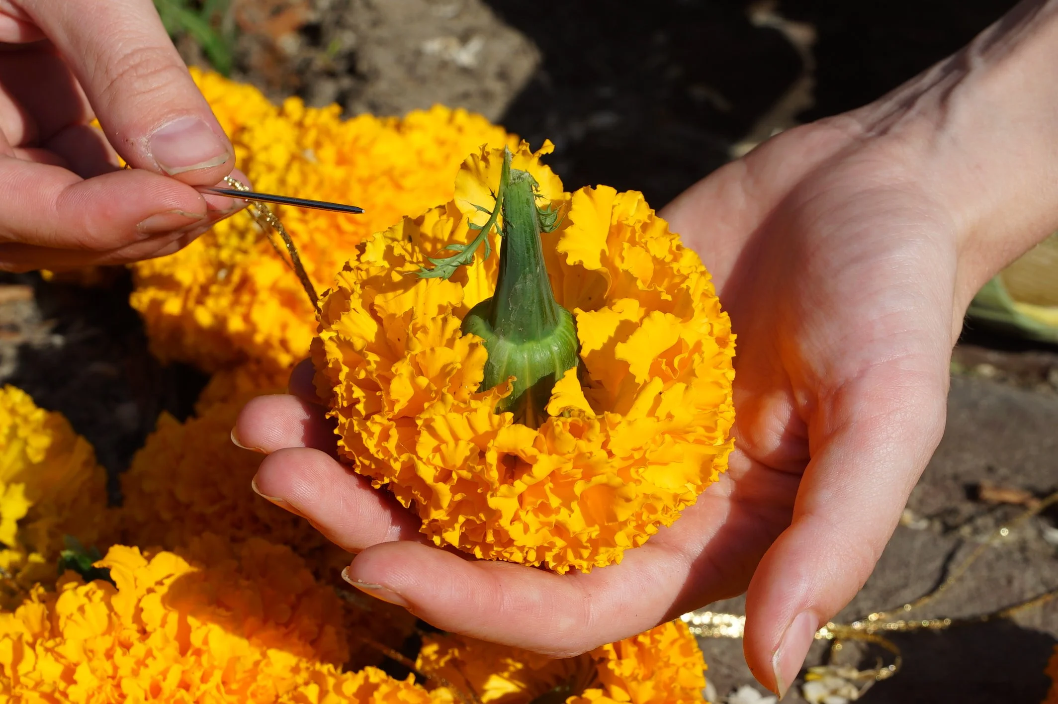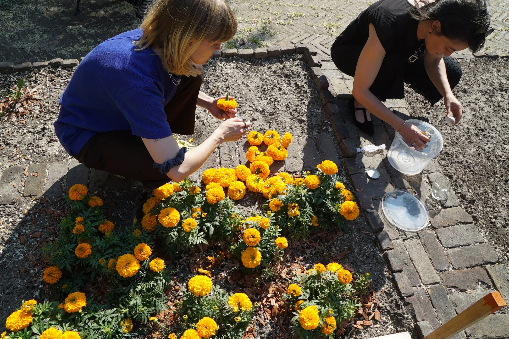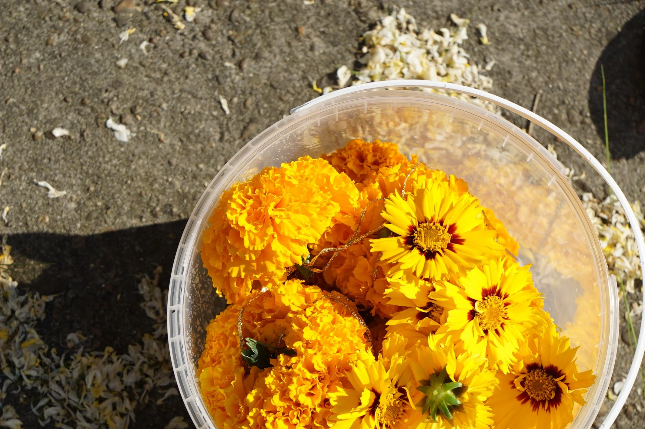 Marigold and Coreopsis harvest with Mathilde and Cecilia