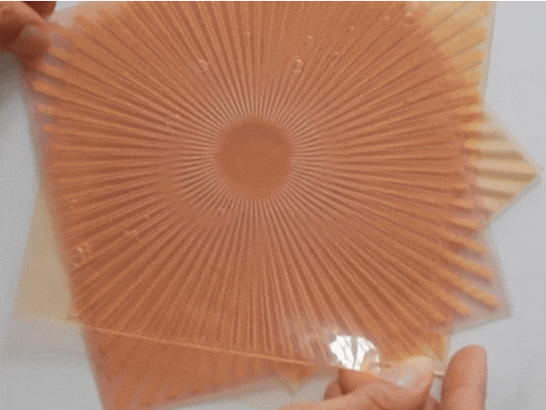 After rounds of trial and refinement, we focused on developing holographic and metallic finishes through mechanical and optical methods - avoiding synthetic additives. We shaped bioplastics into laser-cut sequins in a variety of colors and transparencies, and created engraved moiré patterns by layering laser-engraved lines and curves to generate shifting, illusion-like effects.